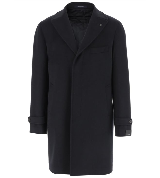 Upgrade your outerwear collection with the Tagliatore Navy Blue coat. Crafted with high-quality materials, this trench coat features coat made of wool x000d, revers x000d, front closure x000d, two welt pockets on the front x000d, one breast pocket x000d, long sleeves x000d, button cuffs x000d, charm logo applied on the front x000d, navy x000d, made in italy x000d, composition 100% wool, the model is wearing size 48 it. model measurements, height 185 cm, chest 94 cm, waist 75 cm, hips 93 cm, shoulder 48 cm. for unmatched warmth and.
