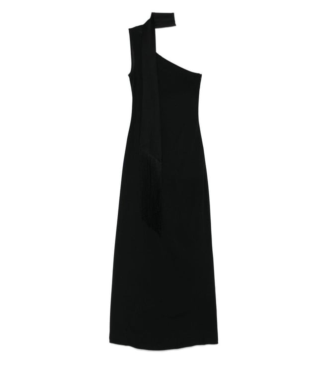 Unveil your inner elegance with this striking black dress, a masterpiece of modern design. Crafted from 100% polyester, its sleek, synthetic fabric drapes effortlessly, exuding sophistication. The solid black hue enhances its timeless allure, while the sleeveless, one-shoulder silhouette adds a touch of daring asymmetry. Perfectly tailored for the contemporary woman, this dress features a seamless closure, ensuring a flawless fit. Ideal for any occasion, it promises to captivate and enchant.