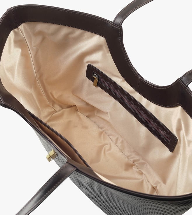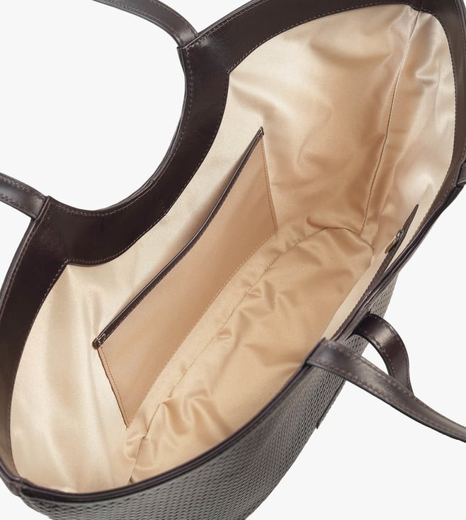 A contoured silhouette recalls sailboats on the Mediterranean, bringing quiet elegance to daily carry. Handcrafted in full-grain vegetable tanned leather with a heat embossed basket weave. Spacious, versatile, and offered in two sizes. Turn lock closure, one main compartment, interior zipper pocket, open pocket, natural polydrill lining, buff antique fittings, YKK zippers.