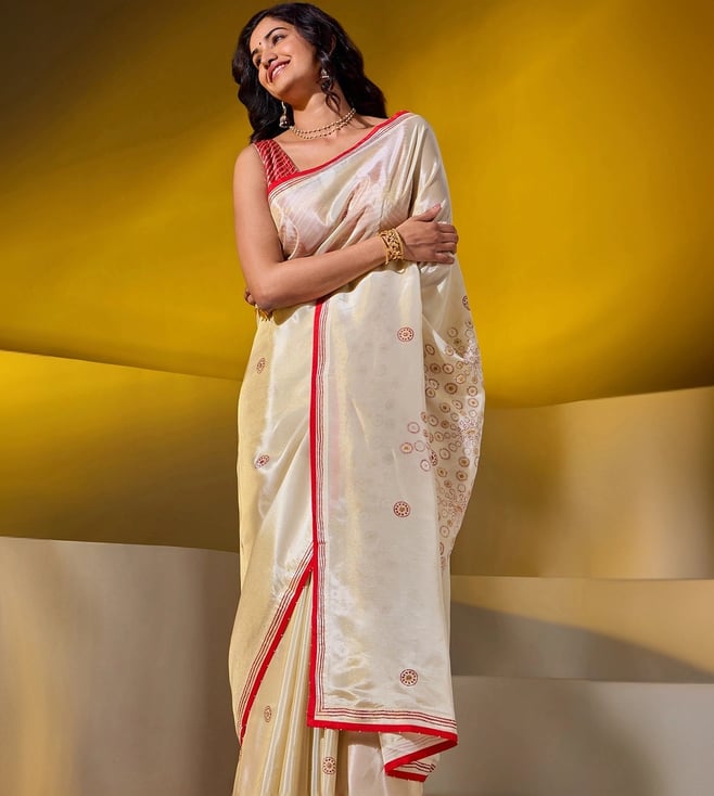 Taneira Beige Pure Organza Tissue Printed Embroidery Saree