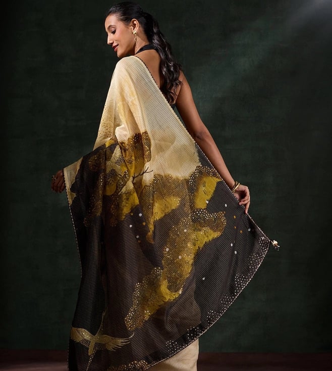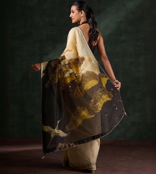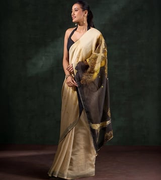 Taneira Beige Pure Silk Cotton Embroidered Saree