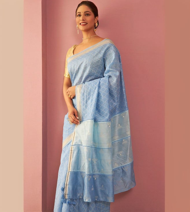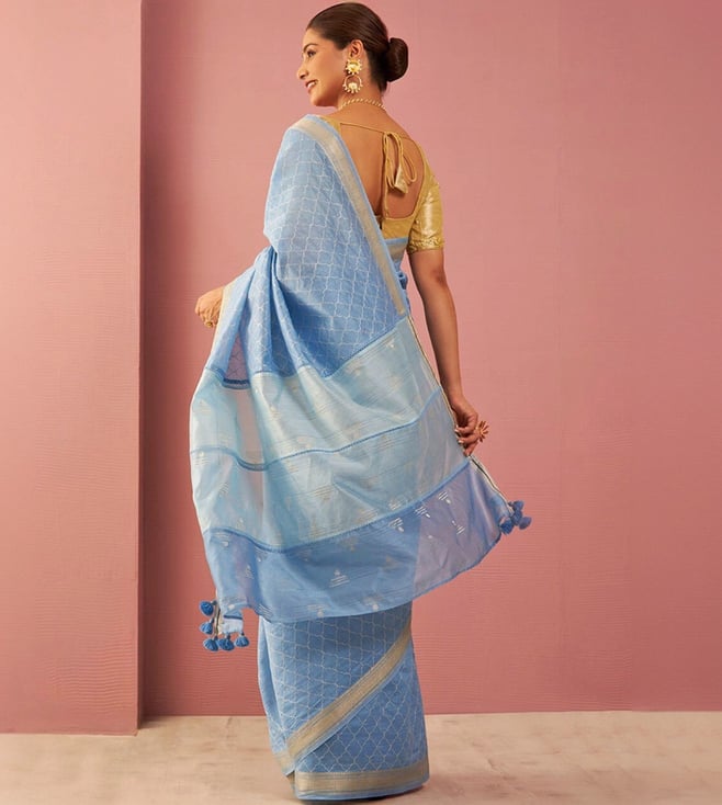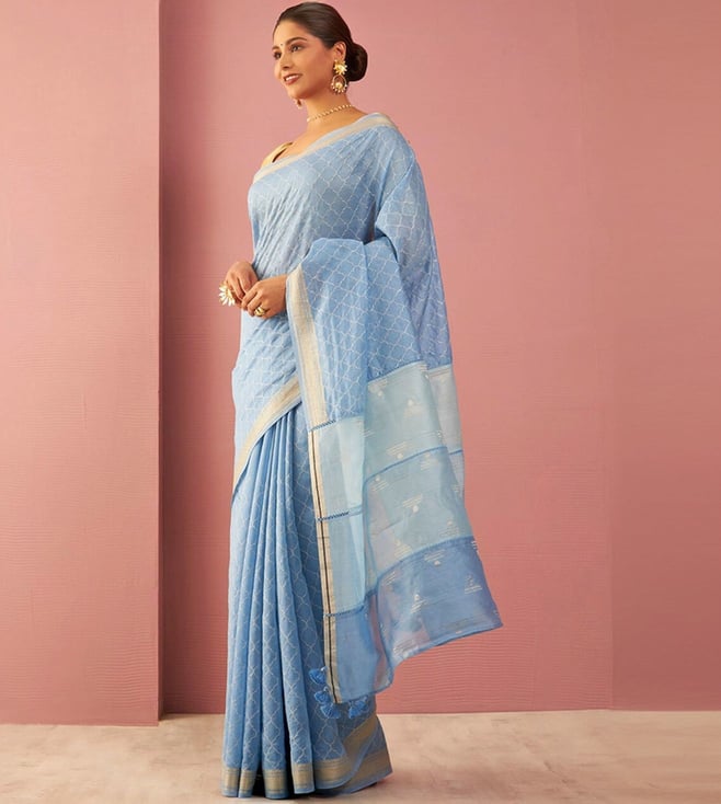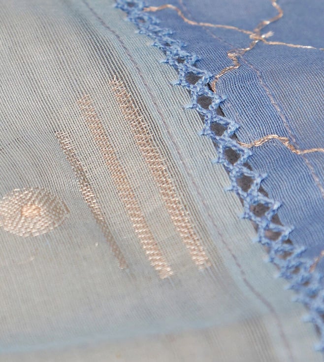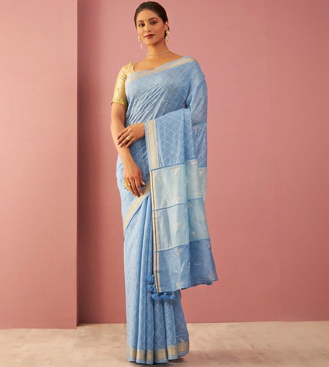 Taneira Blue Pure Silk Cotton Embroidered Saree