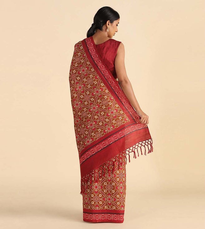 Taneira Brown Digital Printed Pure Tussar Silk Saree