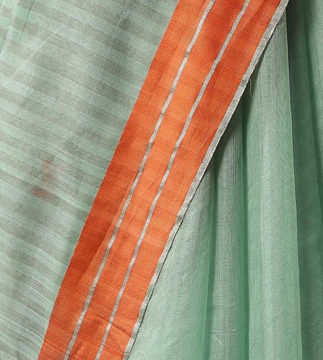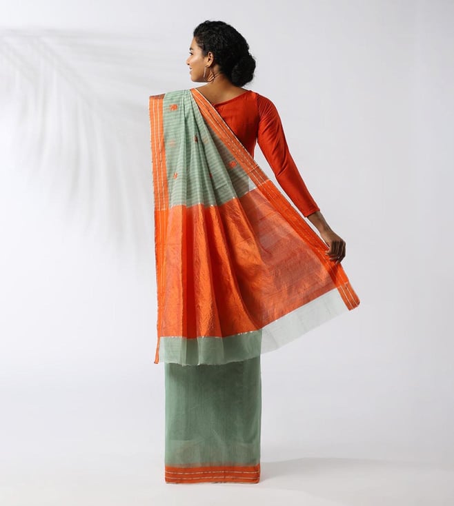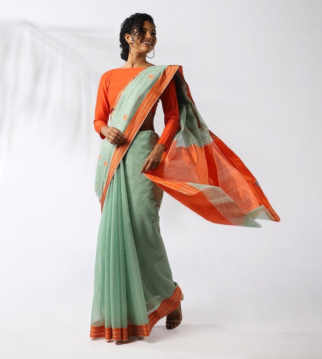 Taneira Green Cotton Silk Embroidered Saree With Unstitched Blouse