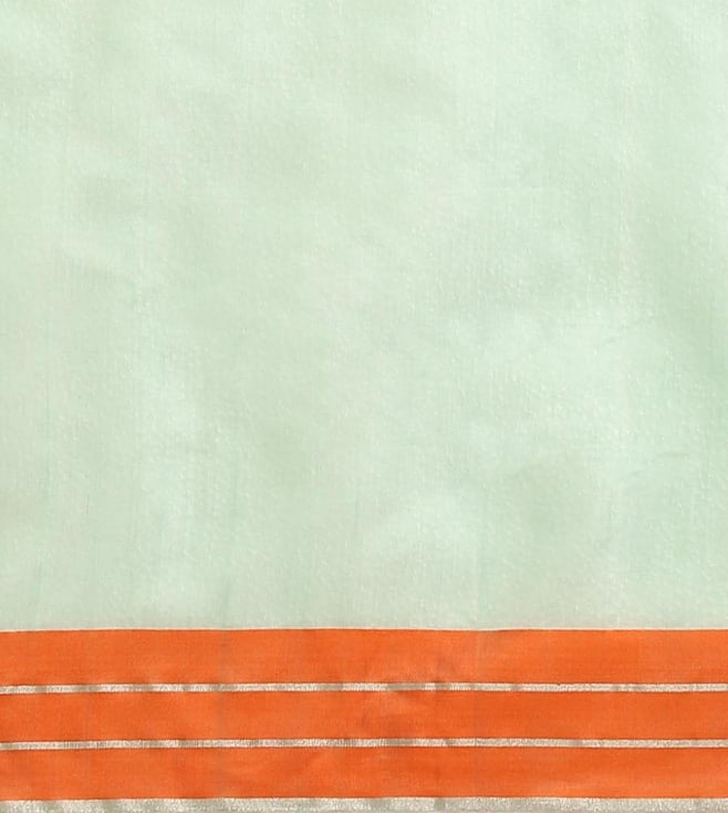Amp up your wardrobe with this green sarees from Taneira. Tailored to sartorial perfection from premium quality fabric, it assures a soft and soothing touch against the skin. The embroidery work speaks for its ornate artistry. It also comes with an unstitched blouse piece.