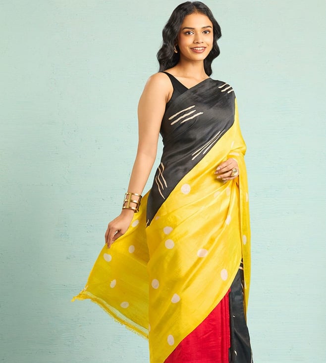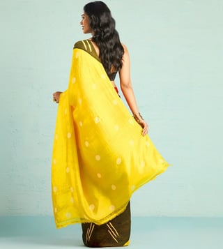Declaim your minimalist mantras by wearing this saree. Tailored to sartorial perfection from 100% silk, it assures a soft and soothing touch against the skin. Disclaimer: Product colour may slightly vary due to photographic lighting sources. Country of Origin - India.