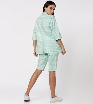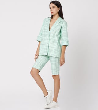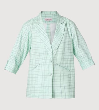 This tailored oversized jacket from Tara and I feature sharp peak lapels with three quarter flap sleeves that makes it casual but smart and easy to layer. It is tailored from cotton twill lycra which makes it soft on the skin. Disclaimer: All other items in the image are only for display purposes and will not be a part of the delivery content. Product colour may slightly vary due to photographic lighting sources. Country Of Origin - India.