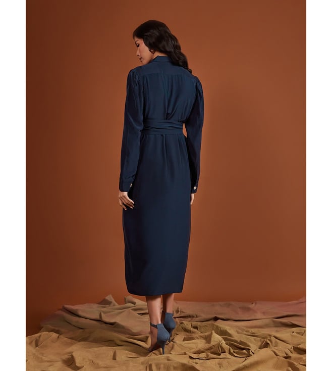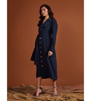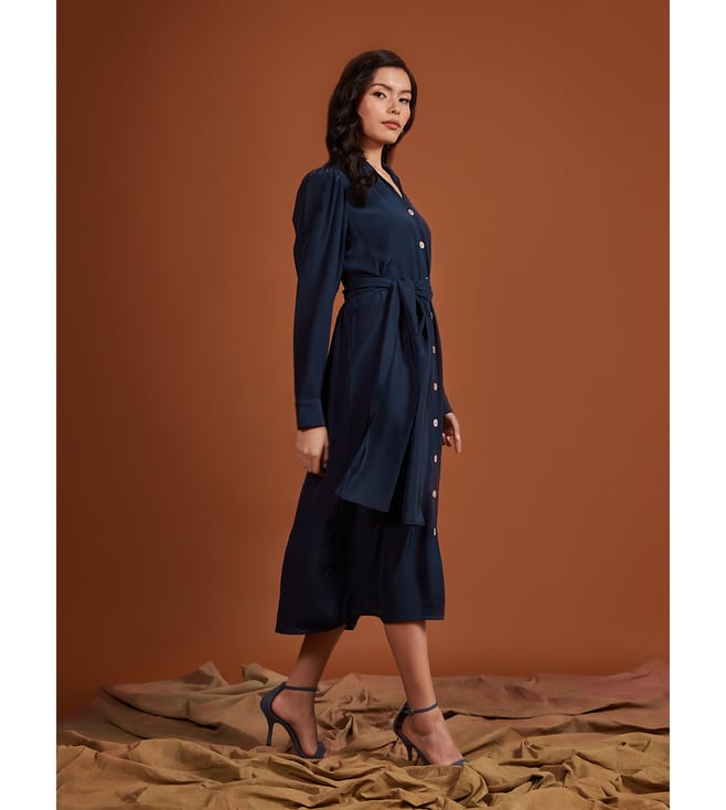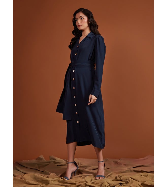 Tara and I Navy Elementary Silk Crepe Shirt Dress