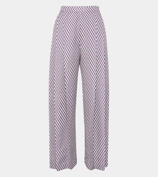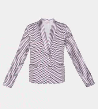 Tara and I White Classique Printed Satin Jacket with Trousers