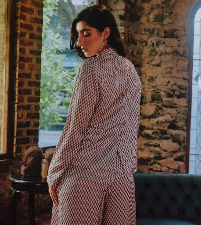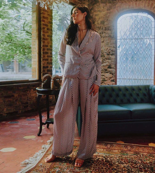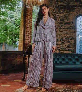 This jacket and trouser set is so chic and versatile that it can be worn over the years. It's adorned with a sharp lapel. Wear it for a high-on style yet comfortable look. Take the look to next level with heels. It has been crafted using modal satin. Disclaimer: Product colour may slightly vary due to photographic lighting sources. Country Of Origin - India.