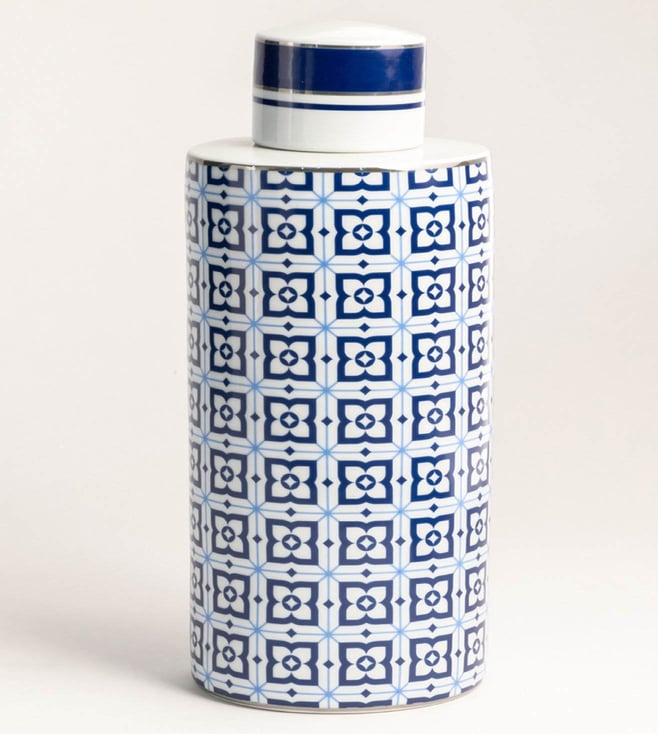 Calix Blue And White Ceramic Jar - Large