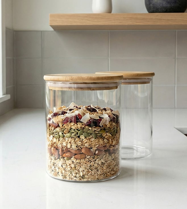 Transparent Glass Air Tight Jar-Set of 2 (800ml)