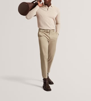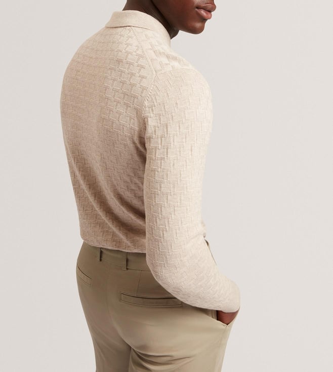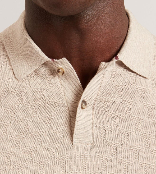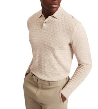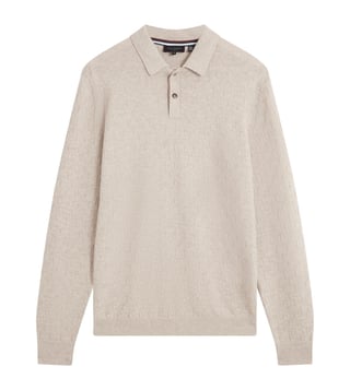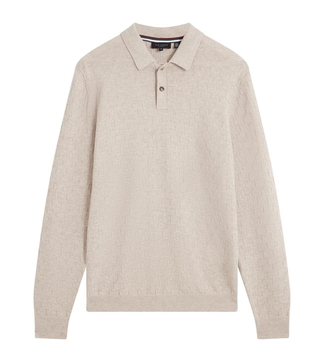 Ted Baker Beige Regular Fit Textured Long Sleeves Polo T-Shirt