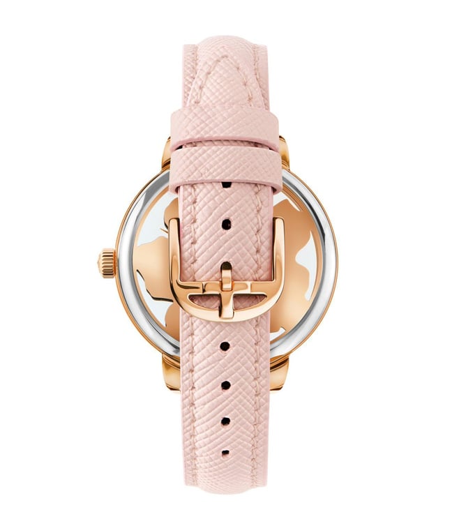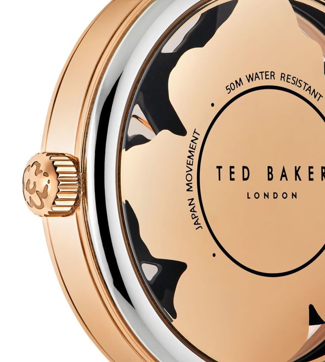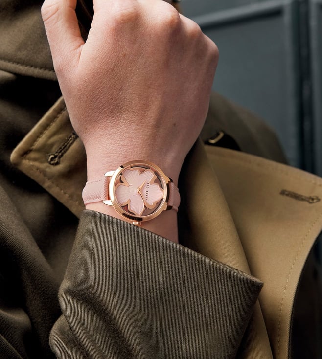 Stay on time and in style with the gorgeous Ted Baker watch. This watch features a rose gold stainless steel case with a pink strap and the pink magnolia dial gives the watch a unique look. Exhibiting a 36 mm diameter dial, the watch is safeguarded by mineral glass, is water resistant to 50 m and functions on a quartz movement.
