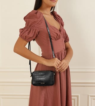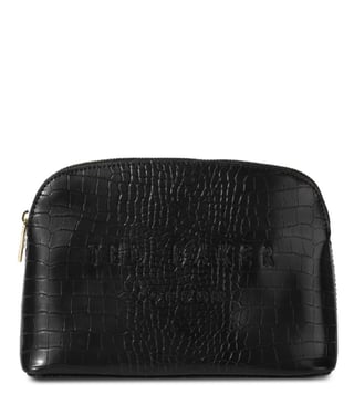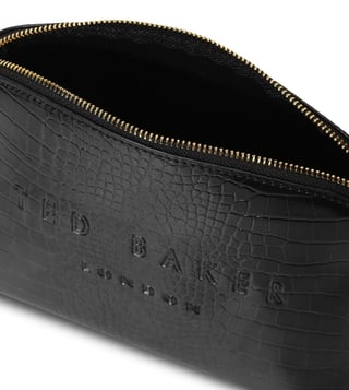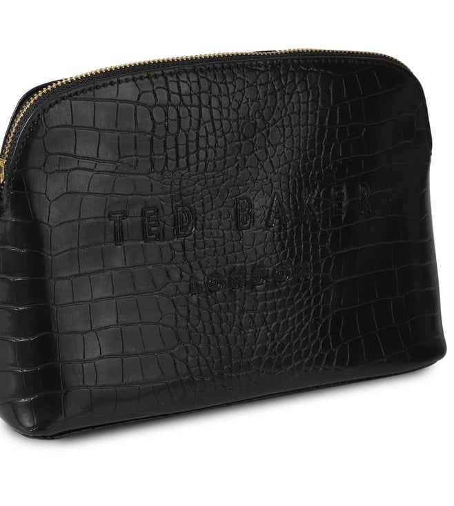 Carry all your beauty essentials safely in this black CROCALA makeup bag by Ted Baker. While the allover crocodile pattern and embossed branding add visual appeal to this bag, the zippered closure with fully lined compartment assures easy access and complete safety of your belongings. Since its beginning in Glasgow in 1988, today Ted Baker is a lifestyle brand offering menswear, womenswear, kidswear, accessories, fragrance, footwear, watches, and more. There a signature piece in Ted Baker collections for everyone.