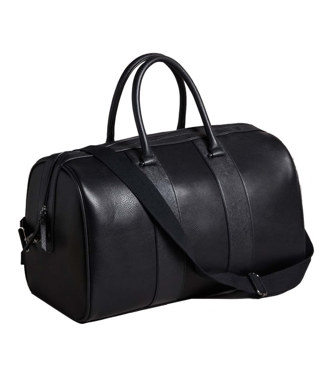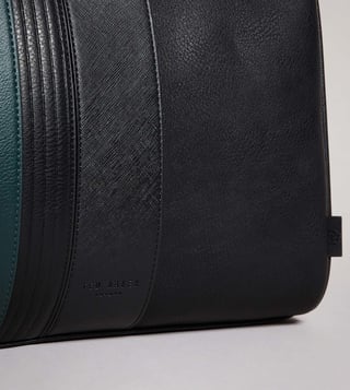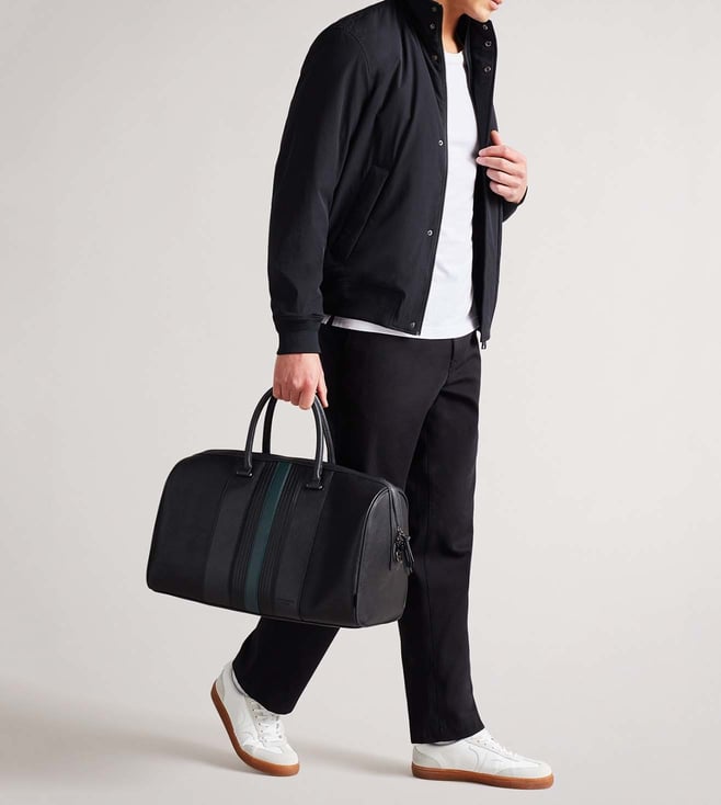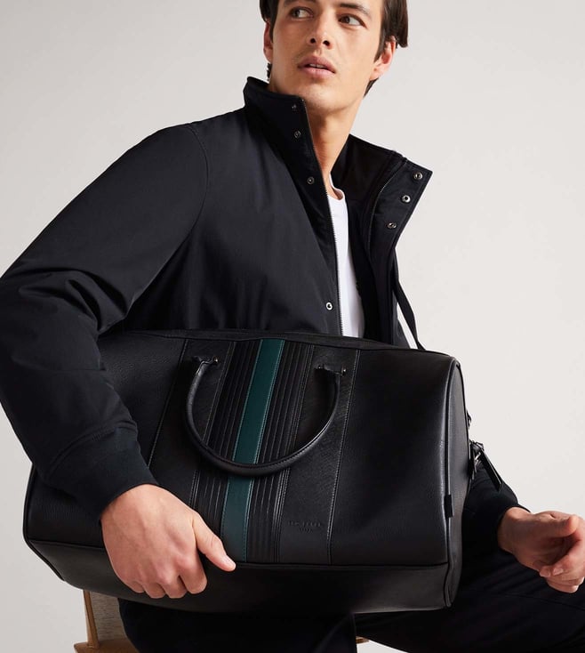 Perfect for gym essentials or weekend getaway necessities, the black EVYDAY holdall bag combines spaciousness with style. Featuring a roomy zipper compartment and twin top handles, this sleek PU bag is practical for everyday use. The elegant striped design adds a sophisticated touch, while the Ted Baker branding showcases its fashion-forward appeal. Established in 1988, Ted Baker is a renowned British luxury clothing retailer known for its creativity, charm, and quirkiness, aiming to be the most captivating British lifestyle brand globally.