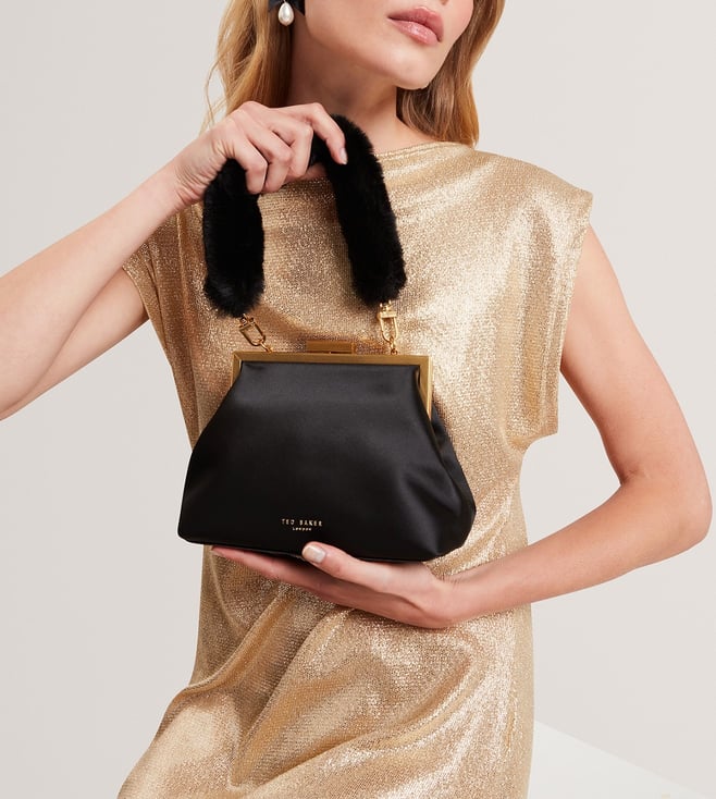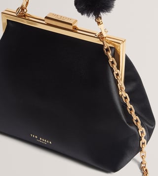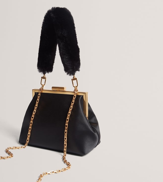 Stylish and sophisticated, this shoulder bag by Ted Baker will surely become your go-to staple in no time. Its timeless silhouette is enhanced by polished hardware and a signature logo detail for a touch of sophistication. It is also detailed with a faux fur small handle and a chain shoulder strap for carrying comfort. Pair it with your finest dresses to stand out in the fashion scene. Ted Baker, a British luxury clothing retail company celebrated for its creativity and charm, aspires to be the worlds most engaging British lifestyle brand since its establishment in 1988.