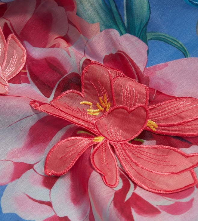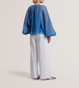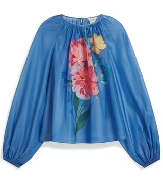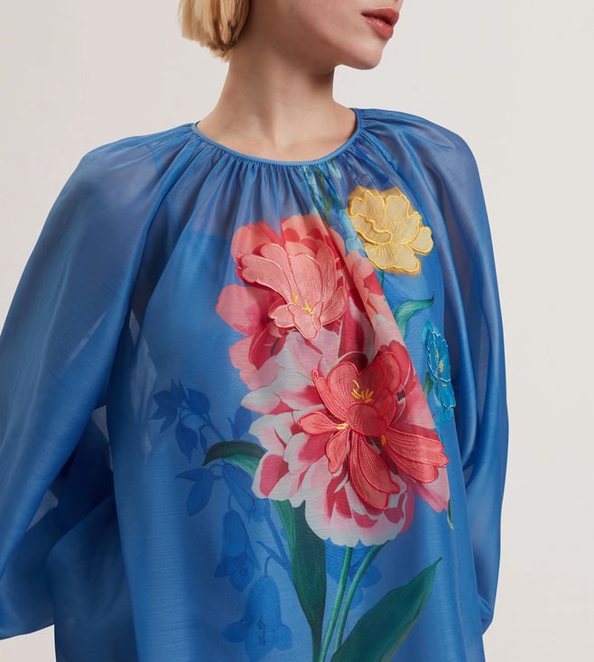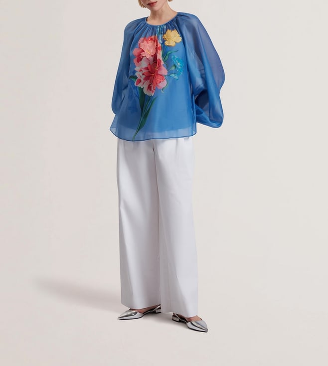 Ted Baker Blue Long Sleeves Alria Floral Graphic Organza Balloon Sleeve Blouse
