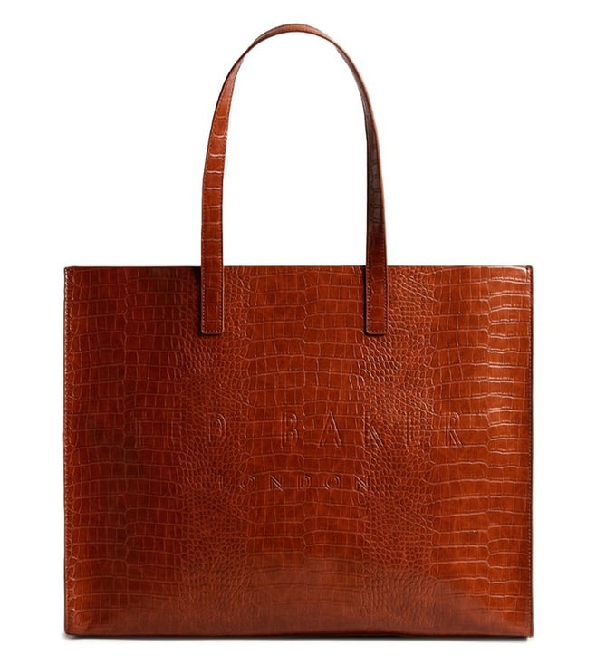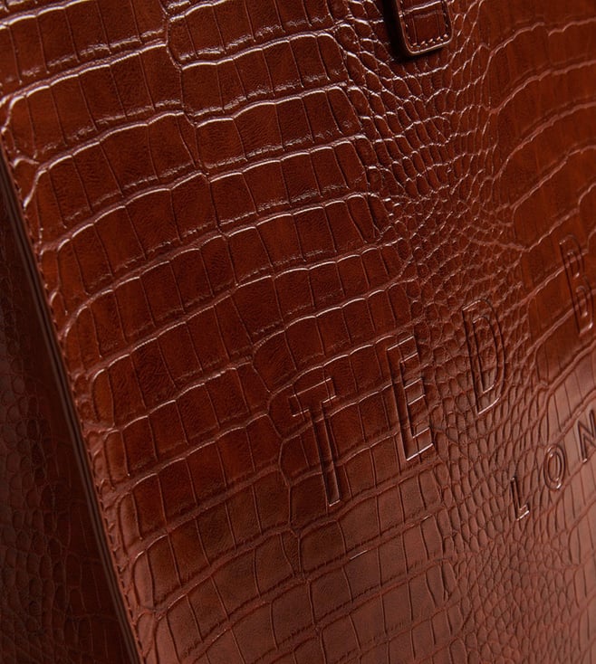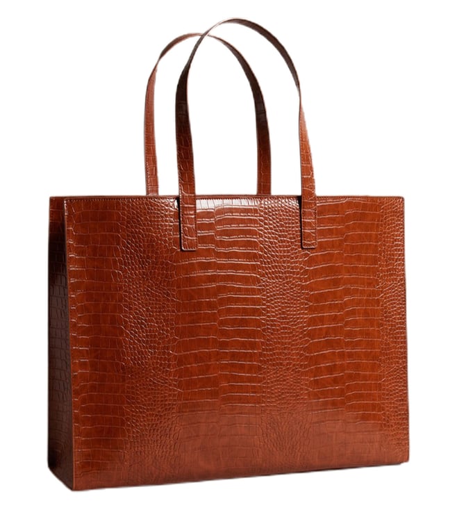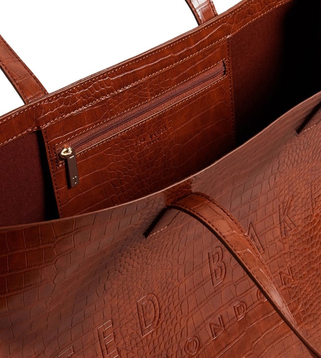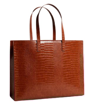 For your business meetings or shopping excursions, Ted Baker tan ALLICON tote bag is the epitome of style and function. Crafted from polyurethane & PU with a cotton inner lining, it offers ample space for your essentials. The sophisticated croc skin pattern and front branding bring a touch of elegance to your outings, ensuring you are fashion forward while on the go.