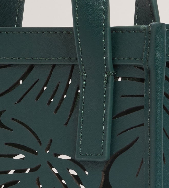 Refined yet luxe, this Ted Baker tote caters to the modern woman seeking a blend of style and utility. Detailed with an adjustable sling and twin handles, it is beautified with the leaf laser cut-out for a classy effect. While the leather construction assures durability, the spacious compartment offers enough space for essentials. Wear it with your best ensembles to make heads turn wherever you go. Ted Baker, a British luxury clothing retail company celebrated for its creativity and charm, aspires to be the worlds most engaging British lifestyle brand since its establishment in 1988.