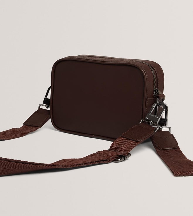 Crafted in a warm brown hue, this Ted Baker sling bag offers refined practicality with a solid design. A secure zip closure opens to multiple compartments, ensuring your essentials stay organized. The adjustable strap provides comfort for daily wear, while the minimalist finish complements both casual and semi-formal outfits. Ideal for hands-free convenience, this sling bag is a stylish yet functional addition to modern wardrobes.