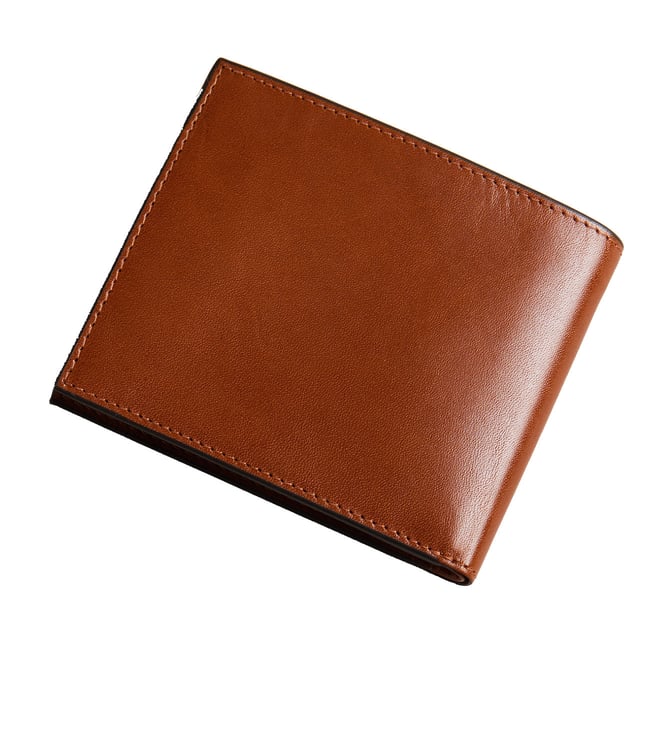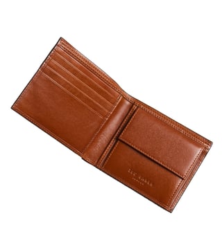 Every aspect, right from the sleek design to colour of this PRUGS bi-fold wallet is just perfection. This tan wallet opens up to a flap coin pocket, two banknote compartments, and multiple card slots to hold your important IDs, paper, and plastic money. The neat exterior with an embossed corner and Ted Baker branding on the front further make this men¿s wallet an ideal choice for every minimal-fashion lover.