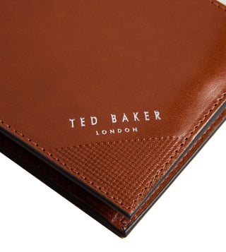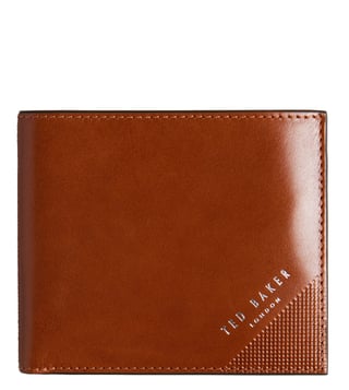 Ted Baker Men Tan Embossed Corner Leather Bi-Fold Coin Wallet