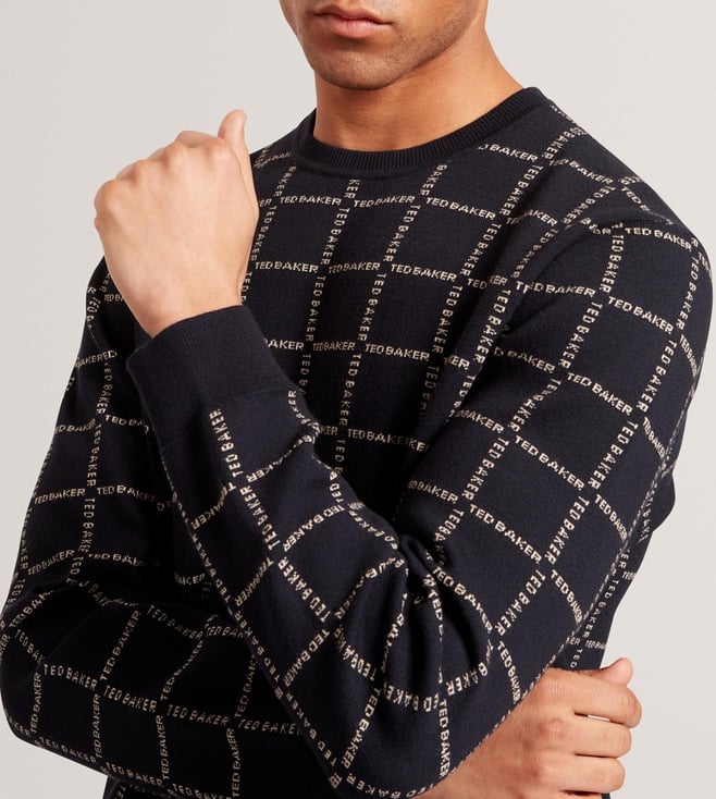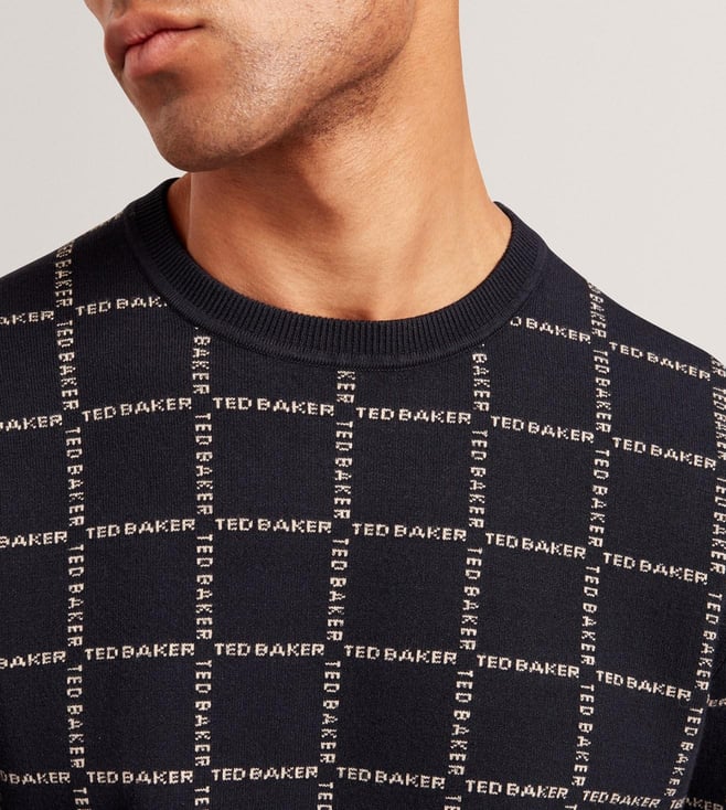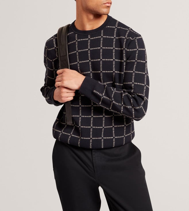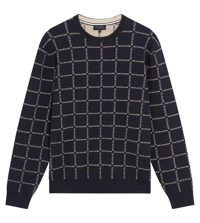 Ted Baker Navy Regular Fit Printed Long Sleeves Sweatshirt