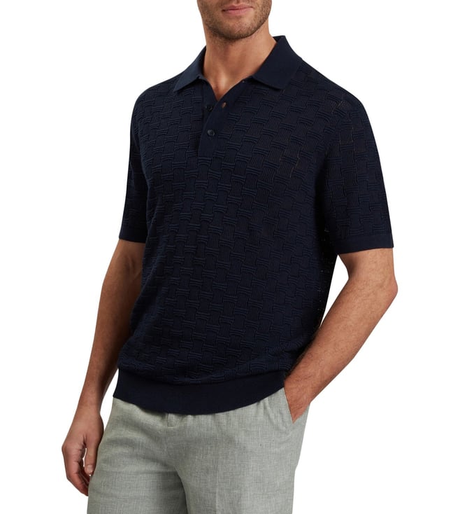 Ted Baker Navy Regular Fit Solid Polo T-Shirt