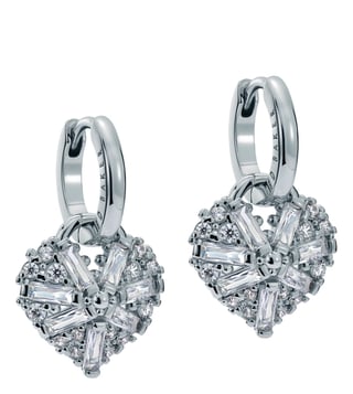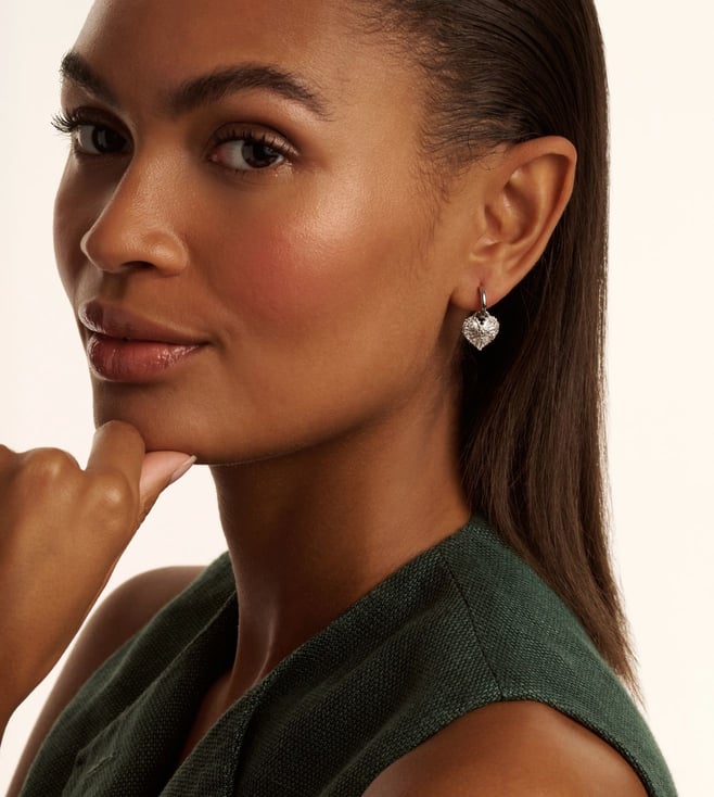 Ted Baker Silver Crystal Cluster Heart Cherise Huggies Earrings