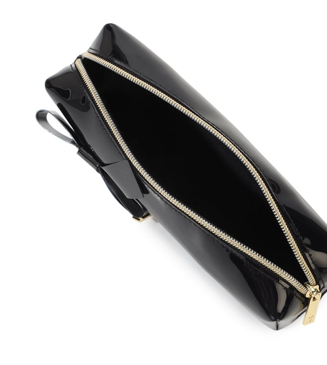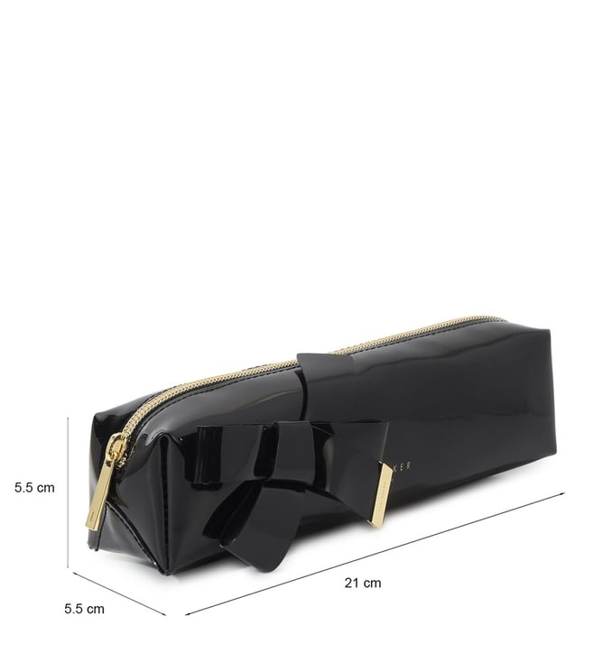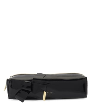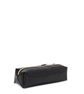 Elevate your style with this sleek black pouch, designed exclusively for the modern woman. Crafted from premium fabric, its solid pattern exudes timeless elegance. The pouch features a smooth zip closure, ensuring your essentials are securely stored while offering easy access. Compact yet spacious, it's perfect for day-to-night transitions, fitting effortlessly in your handbag or carried solo. This versatile accessory is a chic companion for any occasion, blending functionality with sophisticated flair. Height 5.5 cm x Width 21 cm x Depth 5.5 cm