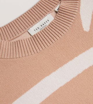 Ted Baker presents the tan AMORIYY knitted T-shirt, where style meets comfort in perfect harmony. The contrasting TB monogram on the front adds a distinctive touch, while the drop-shoulder design creates a relaxed, modern silhouette. Made from a blend of viscose and polyester, this short-sleeved T-shirt is both comfortable and stylish, making it ideal for any casual outing. Finished with a ribbed round neck, cuffs, and hem, it pairs beautifully with various separates.