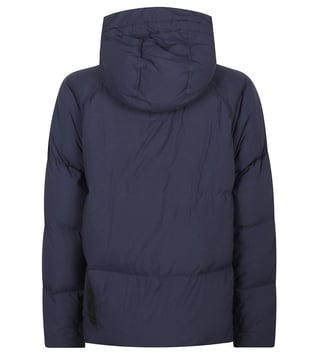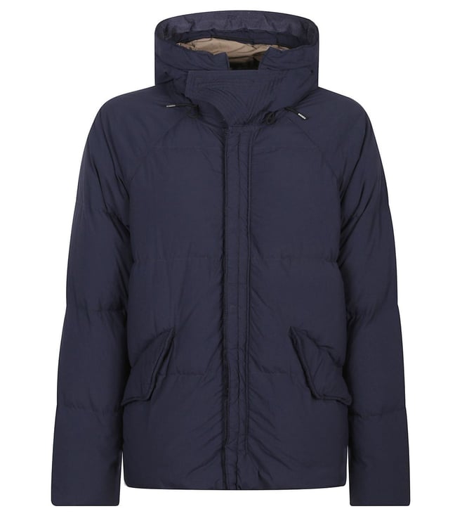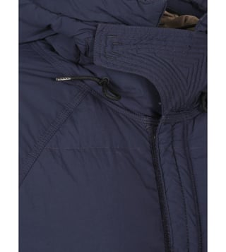 Inner pocket, quilted lined, 2 pockets, hood, drawstring waist, long sleeves, buttons, zip closure, front closure, navy blue. . Products purchased from Darveys are supported exclusively by the warranty/exchange policies of Darveys and its partner boutiques. Brand owners and their channel partners are not responsible for exchange/warranty services for items purchased through Darveys.