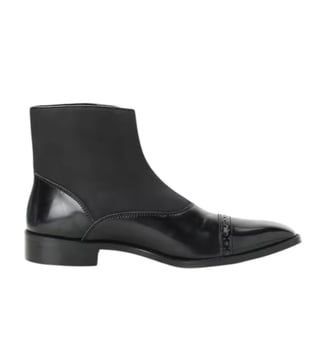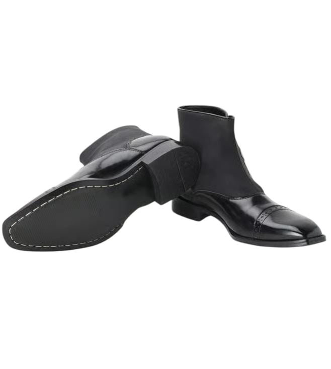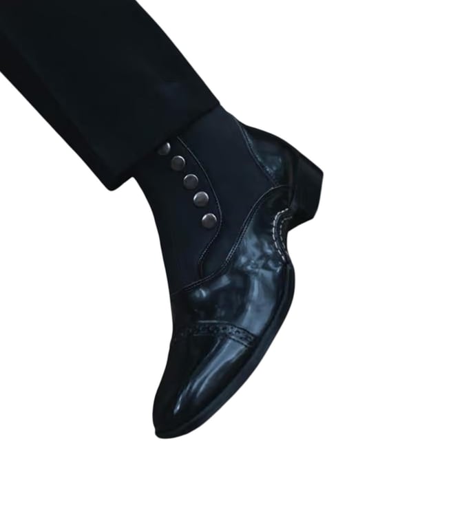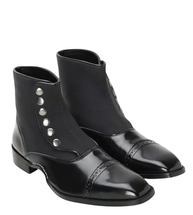 Put your best boot forward with this pair of button boots which is the best example of reinvention of style from the past. These button boots are reinvented with Opanka construction where the sole is stitched onto the upper from inside as well as the exterior part, completely hand-stitched by the master artisans. Finished in rich patent vegan leather, the sole is made of tunit which offers a strong grip and the microfiber upper promises maximum relaxation. Disclaimer: Product colour may slightly vary due to photographic lighting sources. Country Of Origin - India.