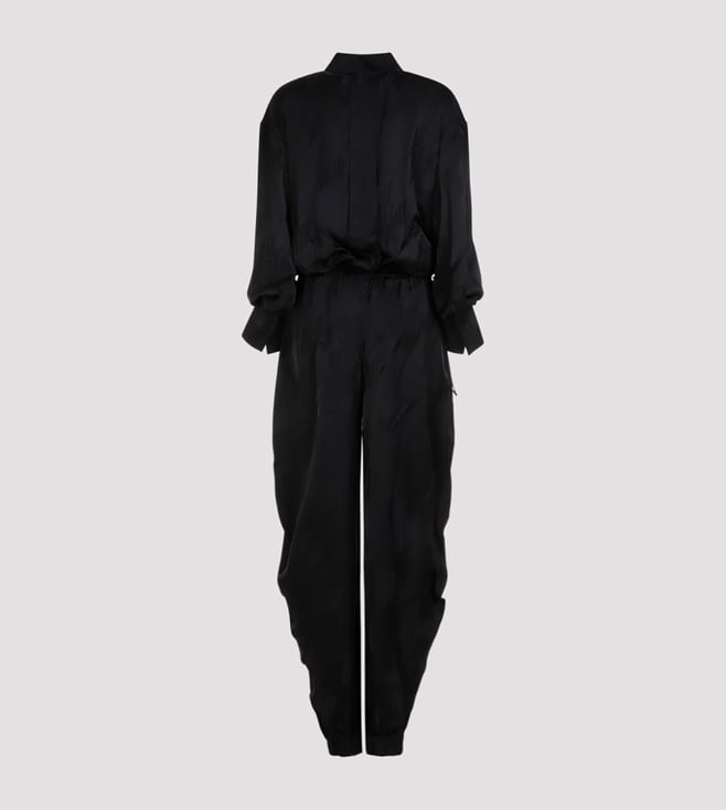 The Attico Black Overall Viscose Jumpsuit is a stunning fusion of elegance and edge, designed exclusively for women who dare to stand out. Crafted from luxurious viscose fabric, this jumpsuit drapes effortlessly, offering a sleek silhouette. Its deep black hue is accentuated by a subtle, intricate pattern that adds depth and intrigue. The design features a sophisticated closure, ensuring a perfect fit while maintaining an air of mystery. Ideal for any occasion, this jumpsuit is a testament to modern femininity.