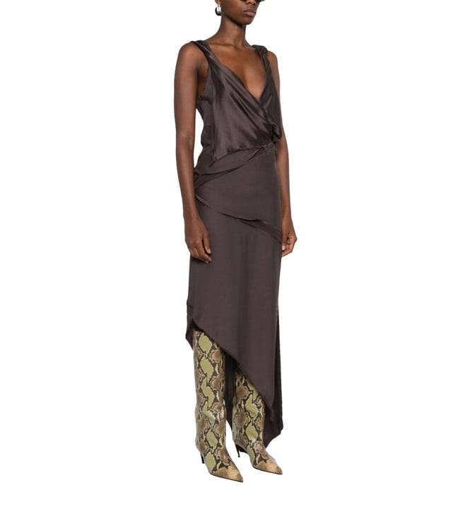 The Attico Brown Draped Midi Dress