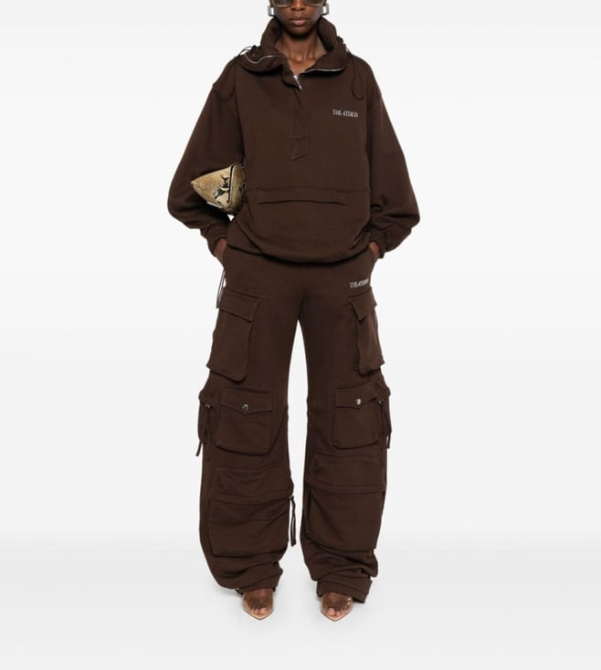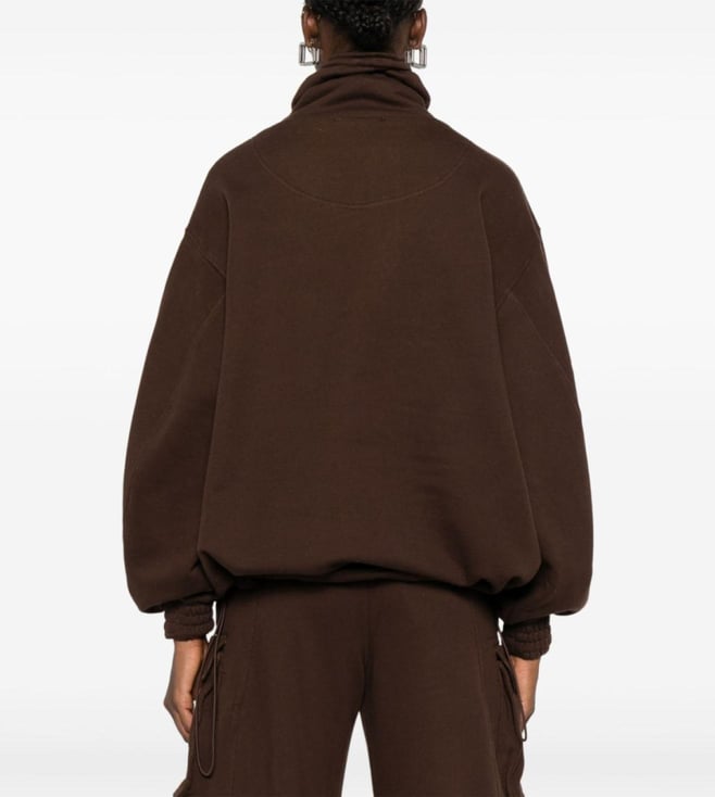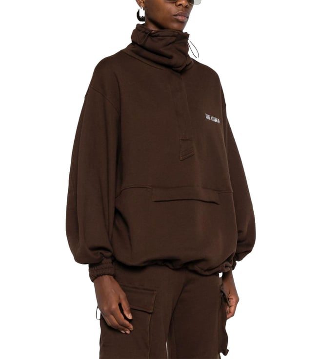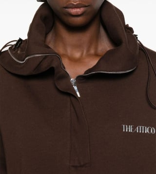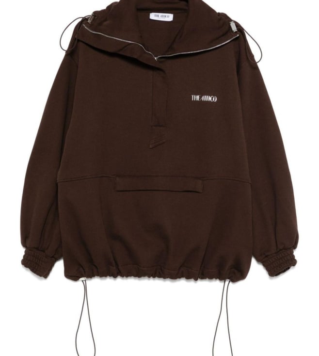 The Attico Brown Logo Half Zip-Up Hoodie Sweatshirt