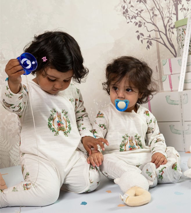 THE BABY TRUNK Kids Multi Peter Rabbit Print Regular Fit Romper