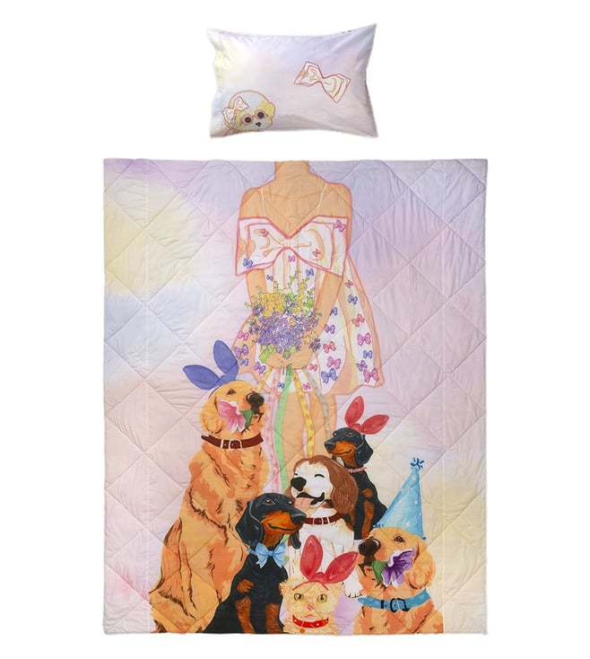 Multicolor Organic Cotton Garden Fairy & Dog Wonderland Print Quilts with 1 Pillow Cover
