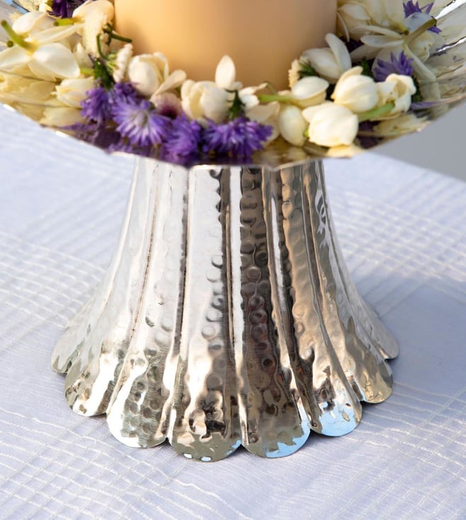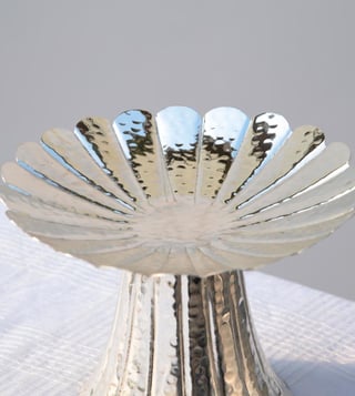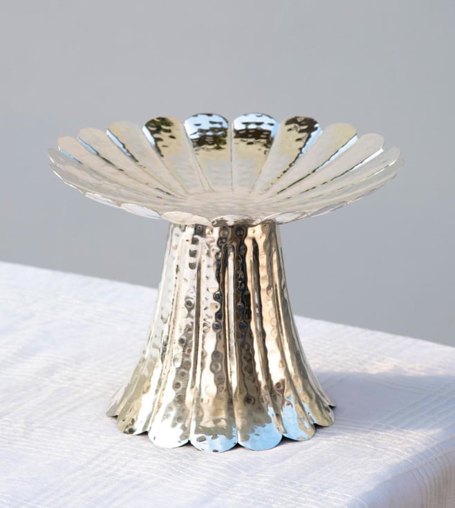 Our multipurpose stand can be used for serving nuts, sweets, paan etc lined with dollies. When not in functional use they can be used as candle stands. These stands are multipurpose with simple minimalistic cuts. It looks beautiful as a part of of your table decor. The Plate on top is not flat, its tapered in like it can be seen in the images, adding to the beauty and functionality.