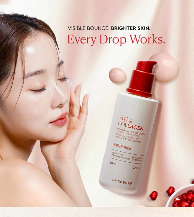This is an intense serum from The Face Shop that has been made with marine collagen and pomegranate extract to firm and lift sagging, dull skin and provide a continuous rush of radiance to the skin. It provides deep nourishment by penetrating deep layers of the skin and is also known to brighten the skin due to the natural estrogen present in pomegranate. It is paraben-free, natural, vegan, sulfate-free, dermatologically tested, mineral oil-free and cruelty-free.