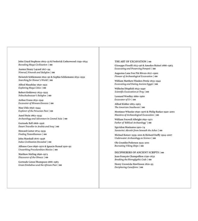 Full of fascinating anecdotes, personal accounts and unexpected insights, this The Great Archaeologists book encompasses more than two centuries of research and excavation around the globe. Controversial figures such as Heinrich Schliemann of Troy fame, and Aurel Stein, plunderer of ancient manuscripts from Central Asia, are reassessed. Brian Fagan has assembled a team of some of the world's greatest living archaeologists to write knowledgeably and entertainingly about their distinguished predecessors.