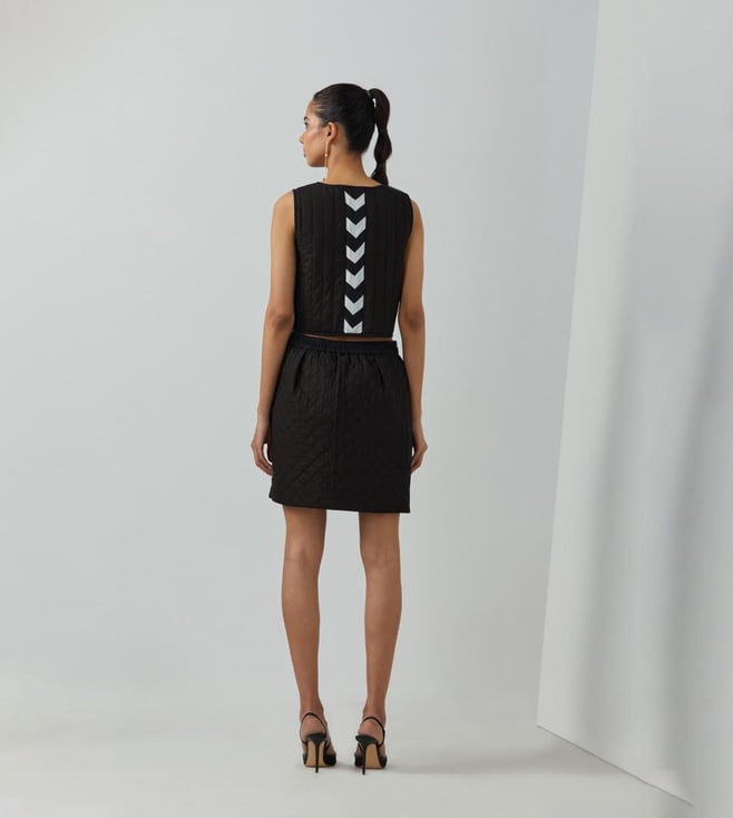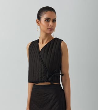 The Indian Cause Black Chaplin Cotton Panoply Overlapped Jacket With Quilted Skirt (Set Of 2)