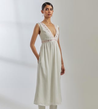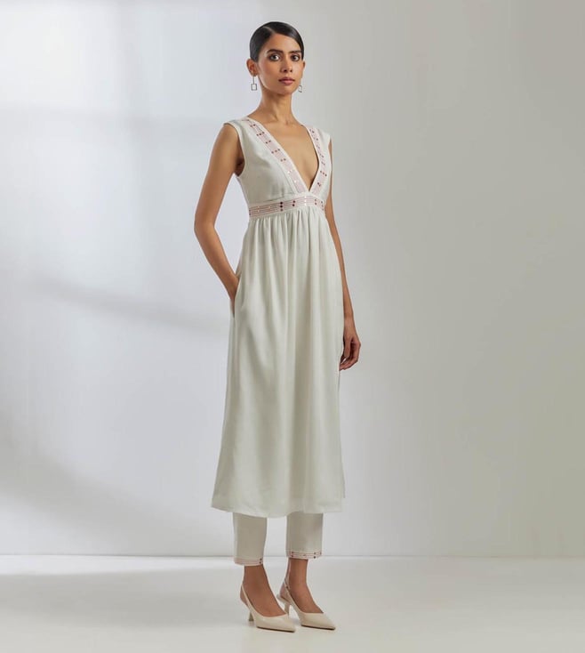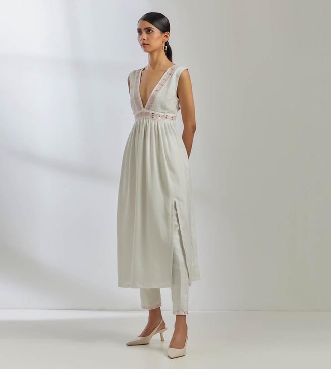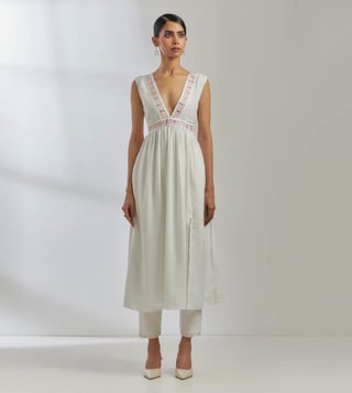 The Indian Cause White Limerince Silk Sirgus Kurta