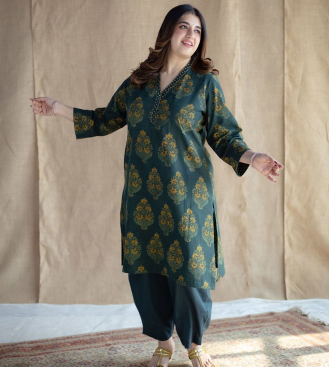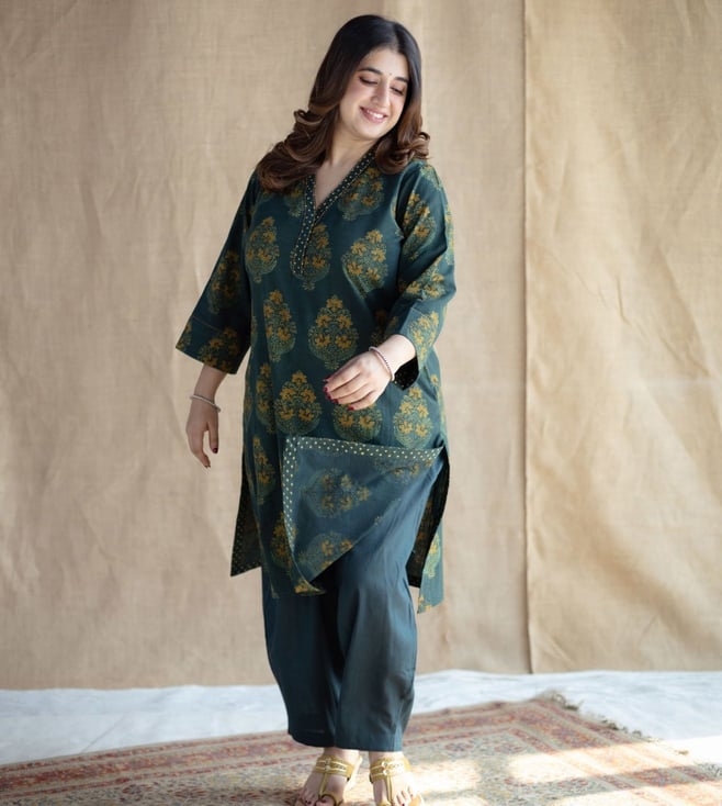 The Indian Ethnic Co Green Cotton Relaxed Fit Chudidar
