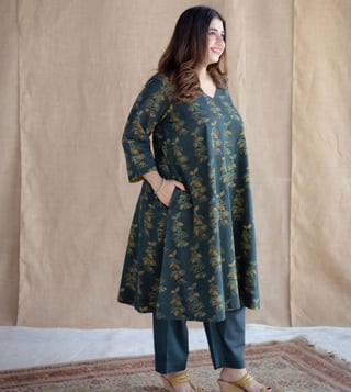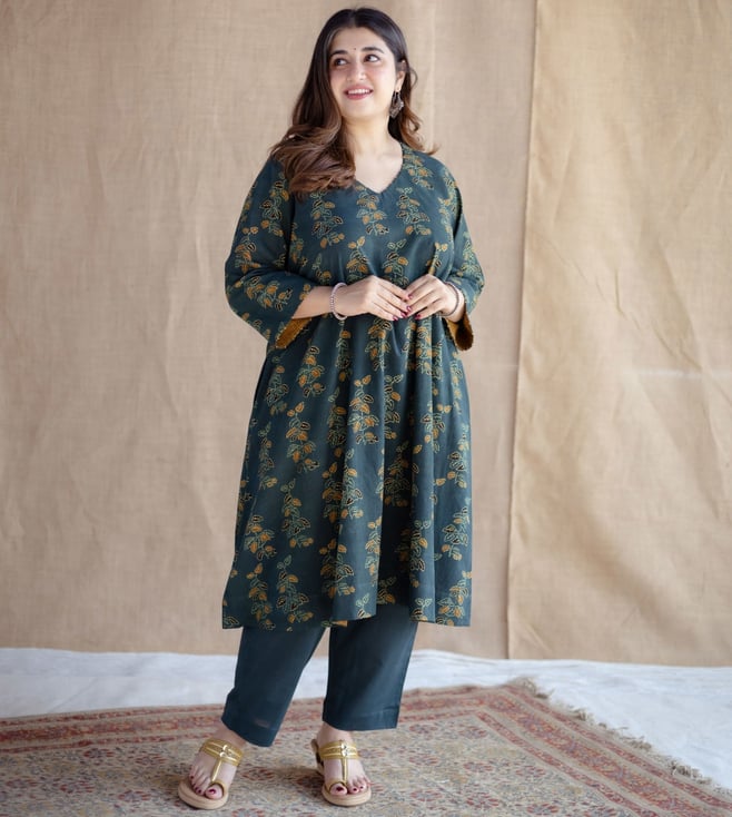 The Indian Ethnic Co Green Cotton Straight Fit Chudidar