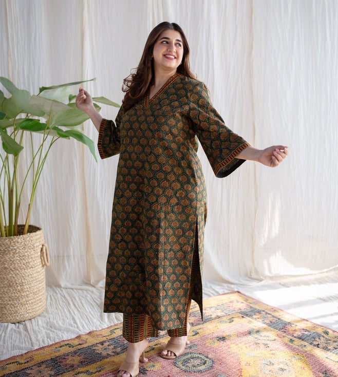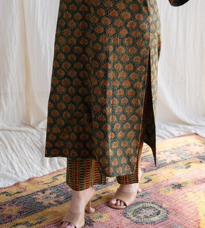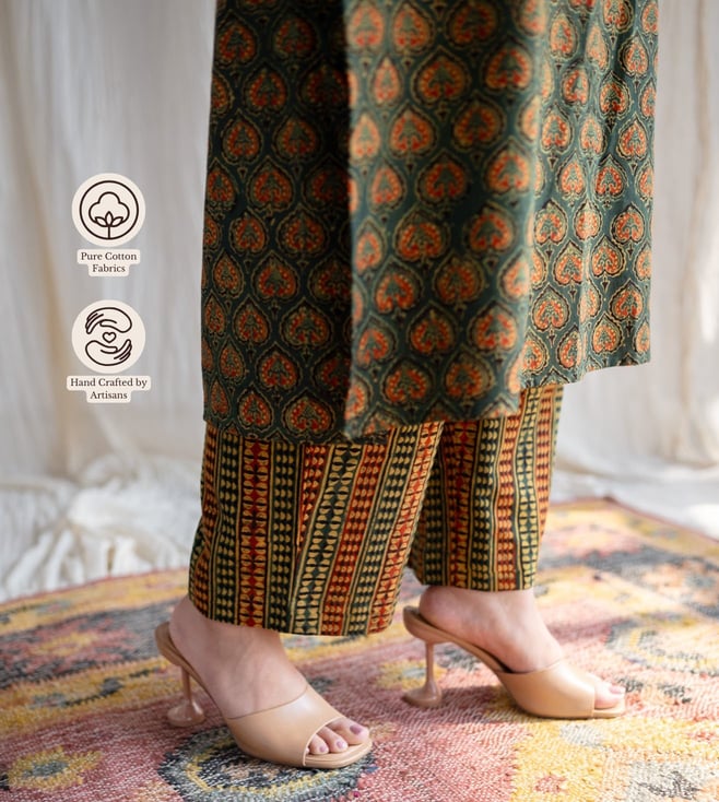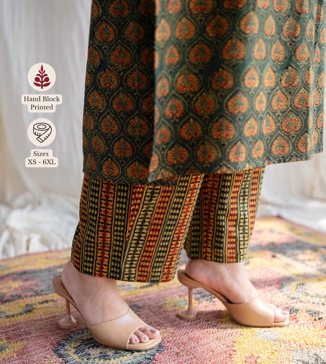 The Indian Ethnic Co Green Straight Ajrakh Cotton Pant