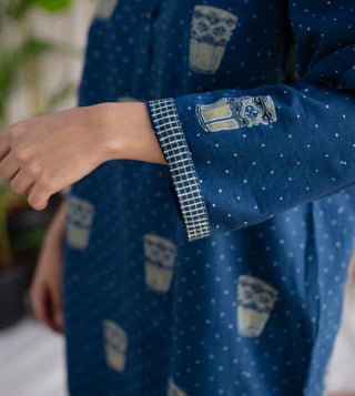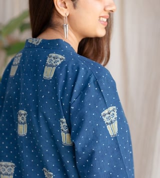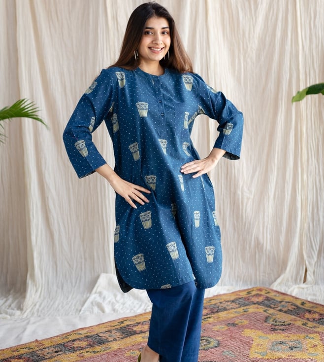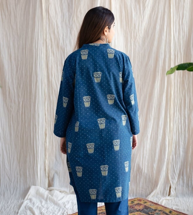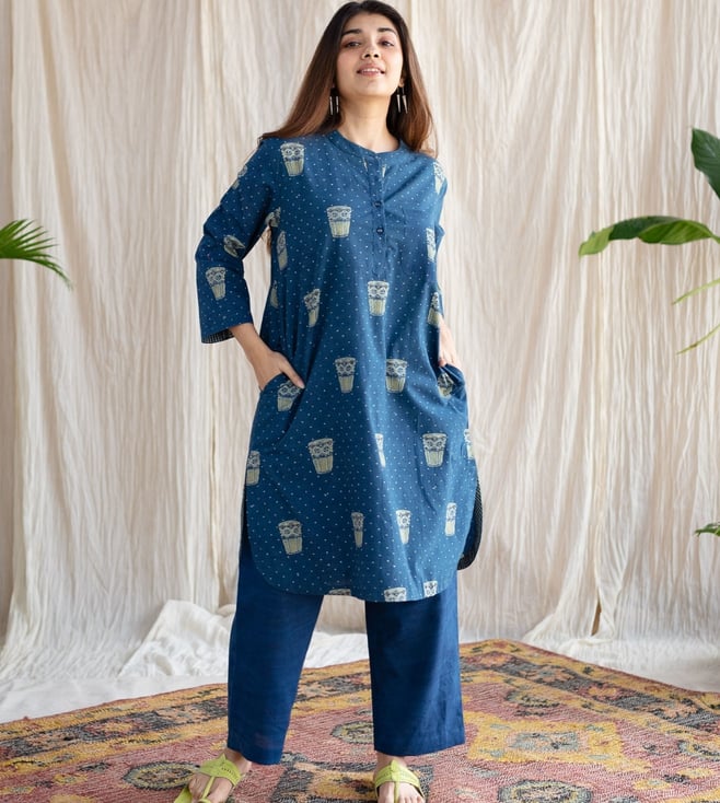 Indigo Straight Ajrakh Handblock Printed Cotton Kurta