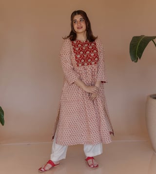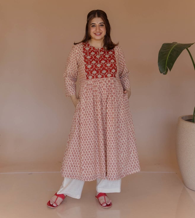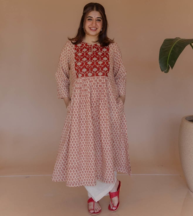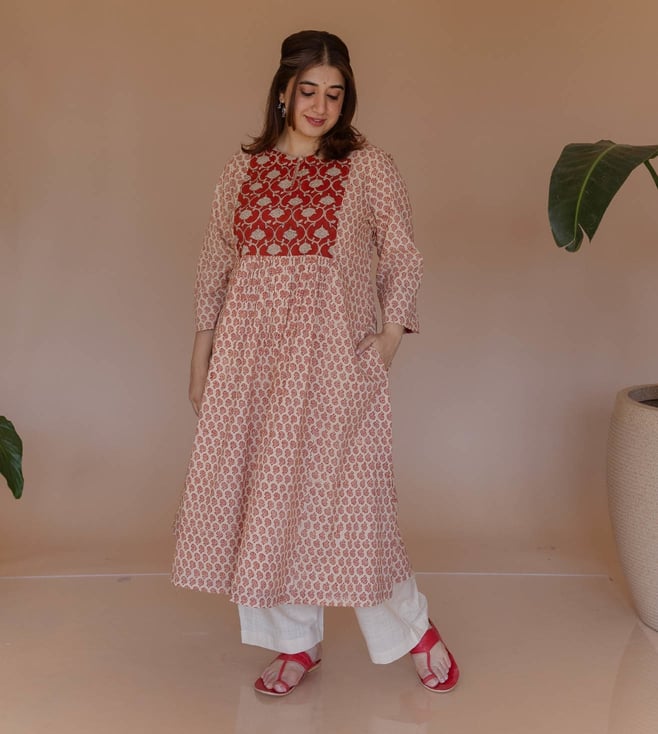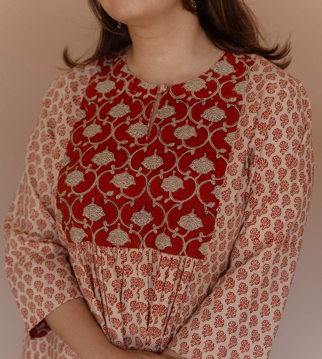 Madder Bagru Handblock Printed Cotton A-Line Kurta. Disclaimer: All Other Items In The Image Are Only For Display Purposes And Will Not Be A Part Of The Delivery Content. Product Colour May Slightly Vary Due To Photographic Lighting Sources. Country Of¿Origin¿-¿India.