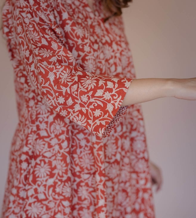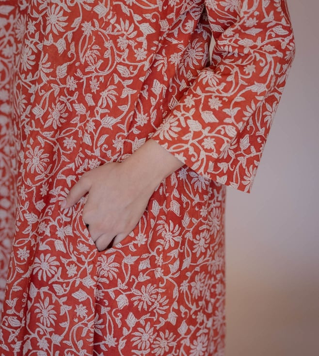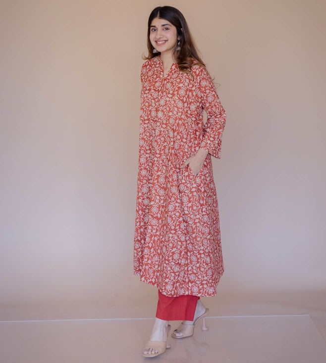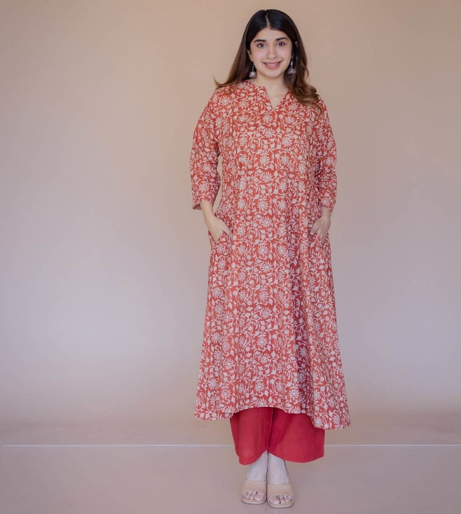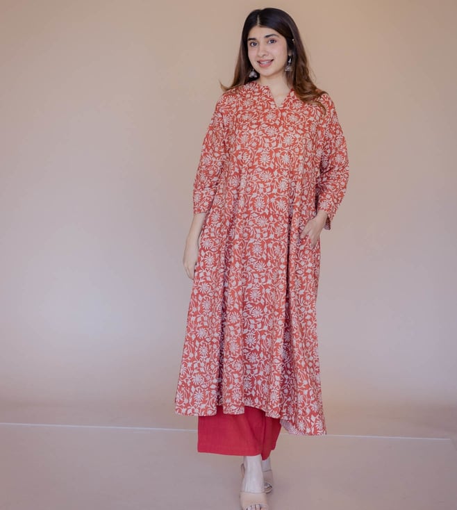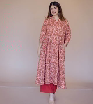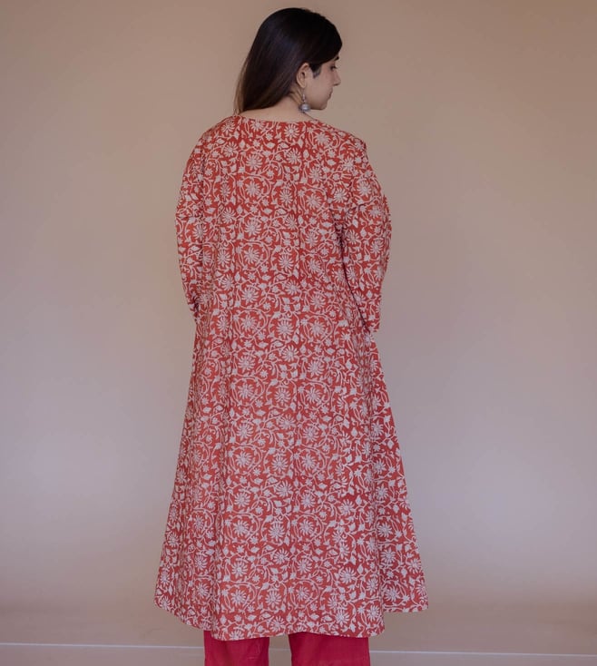 Madder Bagru Handblock Printed Cotton Jhabba Kali Kurta. Disclaimer: All Other Items In The Image Are Only For Display Purposes And Will Not Be A Part Of The Delivery Content. Product Colour May Slightly Vary Due To Photographic Lighting Sources. Country Of¿Origin¿-¿India.